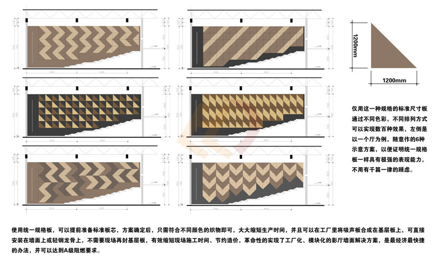4、可以實現(xiàn)多種效果的標準尺寸吸聲板
