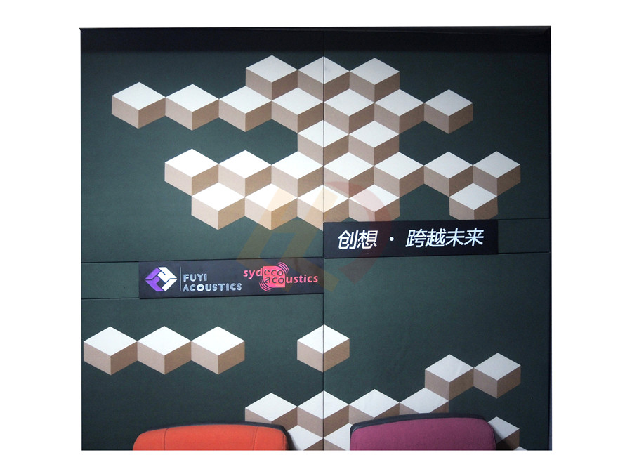 藝術吸聲板板芯選用90kg/m3高密度離心玻璃棉板,經(jīng)過環(huán)保處理,全封閉無纖維脫落。表面可選用不同種類的吸聲織物??砂纯蛻舻牟煌笾谱鞒蓸藴拾?、異型版、折角板、弧度板……